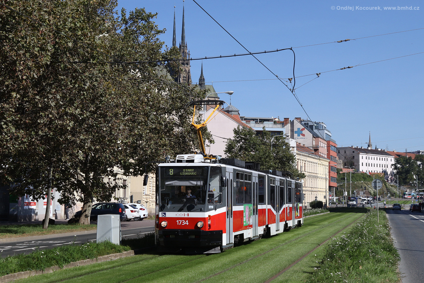 Fotografie ČKD Tatra KT8D5N 1734 DPMB | Brno-Staré Brno, Nové sady | Fotogalerie BMHD