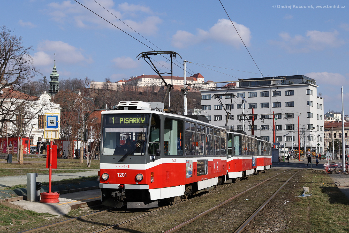 Fotografie ČKD DS T6A5 1201 DPMB | ČKD DS T6A5 1202 DPMB | ČKD DS T6A5 1203 DPMB | Brno-Staré Brno, Veletržní | Fotogalerie BMHD