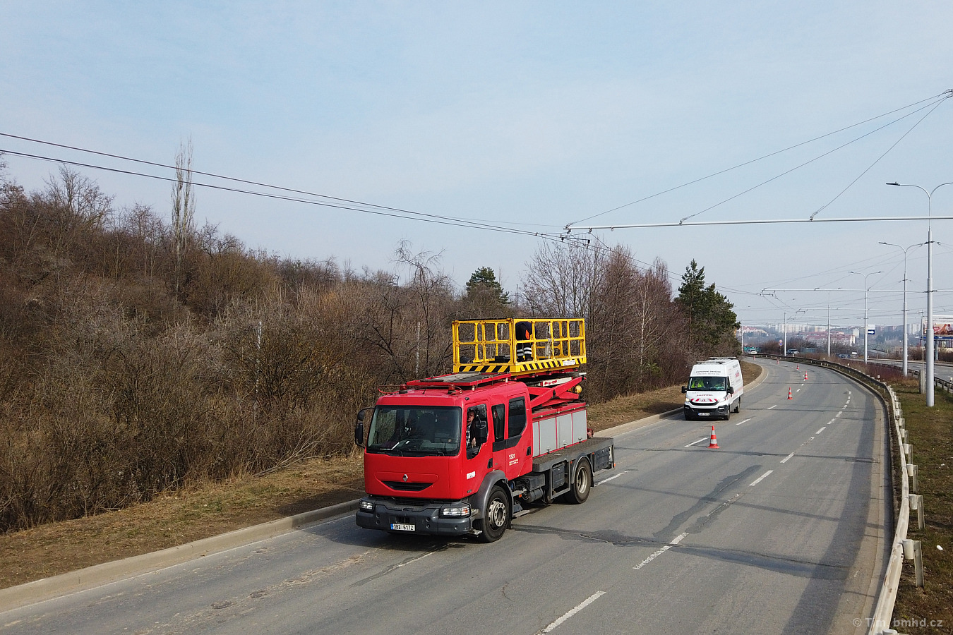 Montážní práce na manipulační trolejbusové trati Jedovnická - Bělohorská