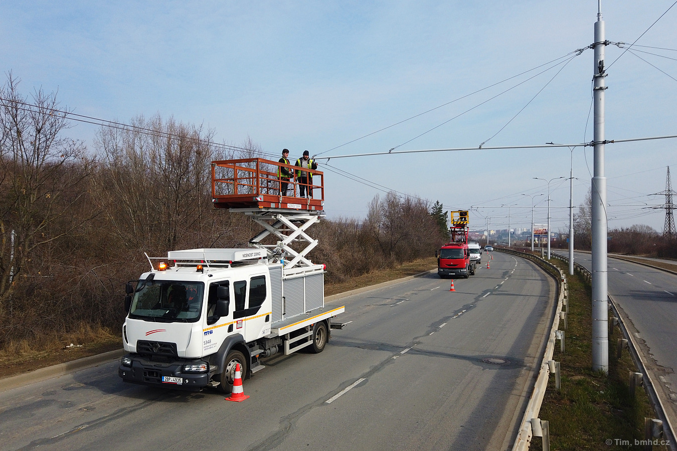 Montážní práce na manipulační trolejbusové trati Jedovnická - Bělohorská
