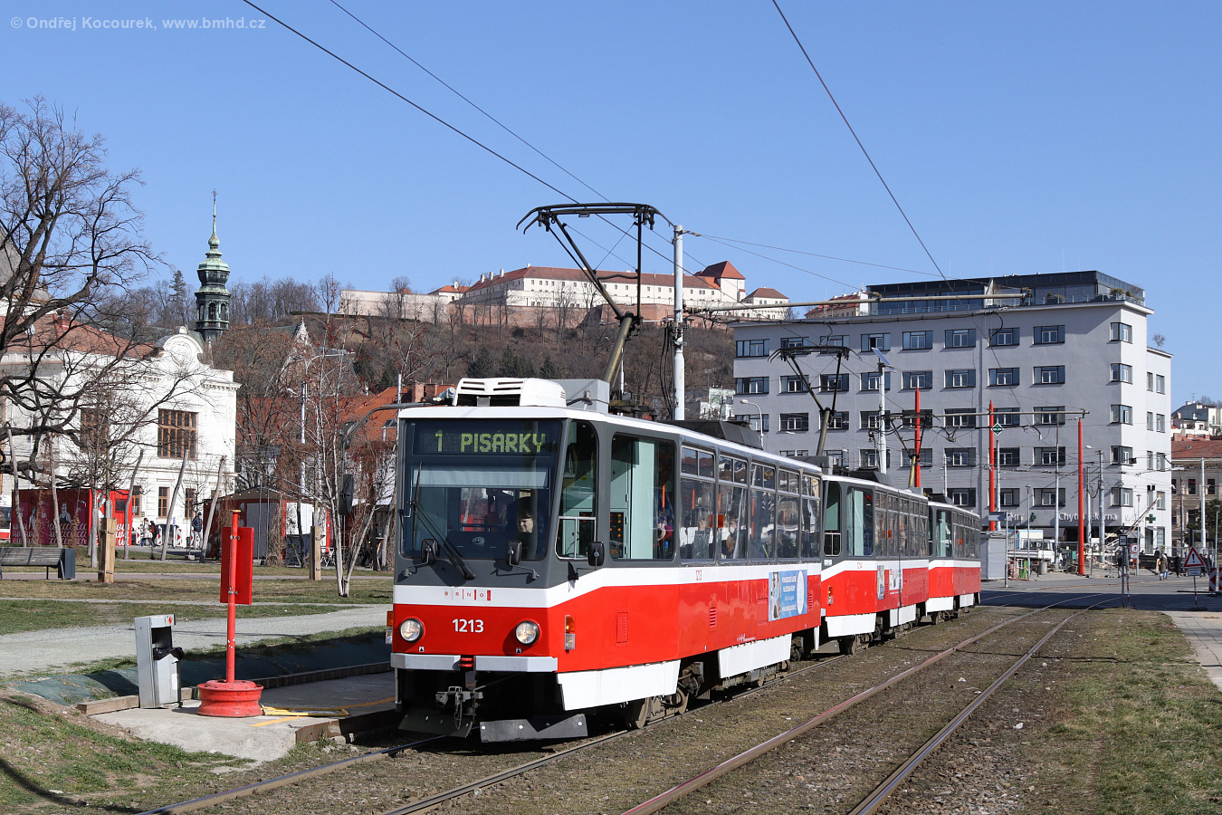Fotografie ČKD DS T6A5 1213 DPMB | ČKD DS T6A5 1214 DPMB | ČKD DS T6A5 1215 DPMB | Brno-Staré Brno, Veletržní | Fotogalerie BMHD