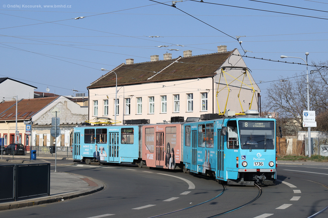 Fotografie ČKD Tatra KT8D5R.N2 1736 DPMB | Brno-Židenice, Životského | Fotogalerie BMHD