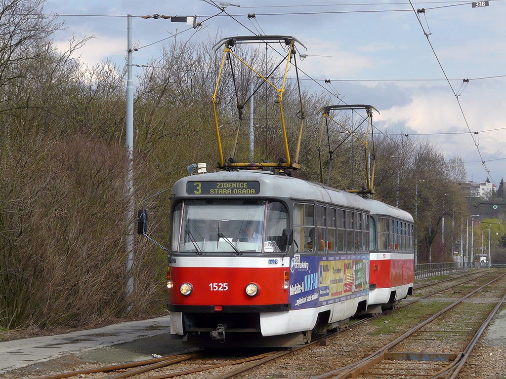 Fotografie ČKD Tatra T3 1525 DPMB | ČKD Tatra T3 1528 DPMB | Brno-Komín, Kníničská | Fotogalerie BMHD