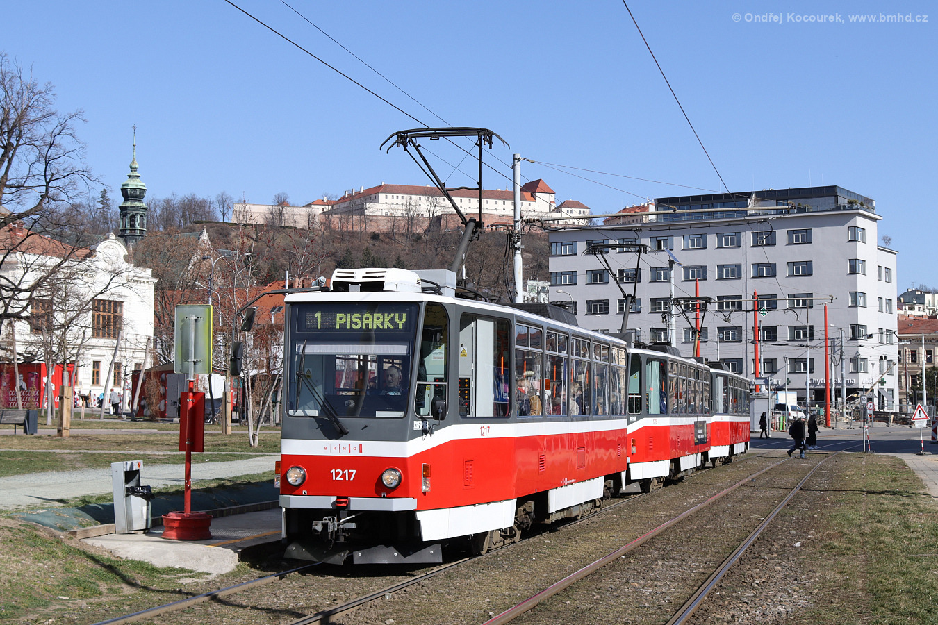 Fotografie ČKD DS T6A5 1217 DPMB | ČKD DS T6A5 1218 DPMB | ČKD DS T6A5 1207 DPMB | Brno-Staré Brno, Veletržní | Fotogalerie BMHD