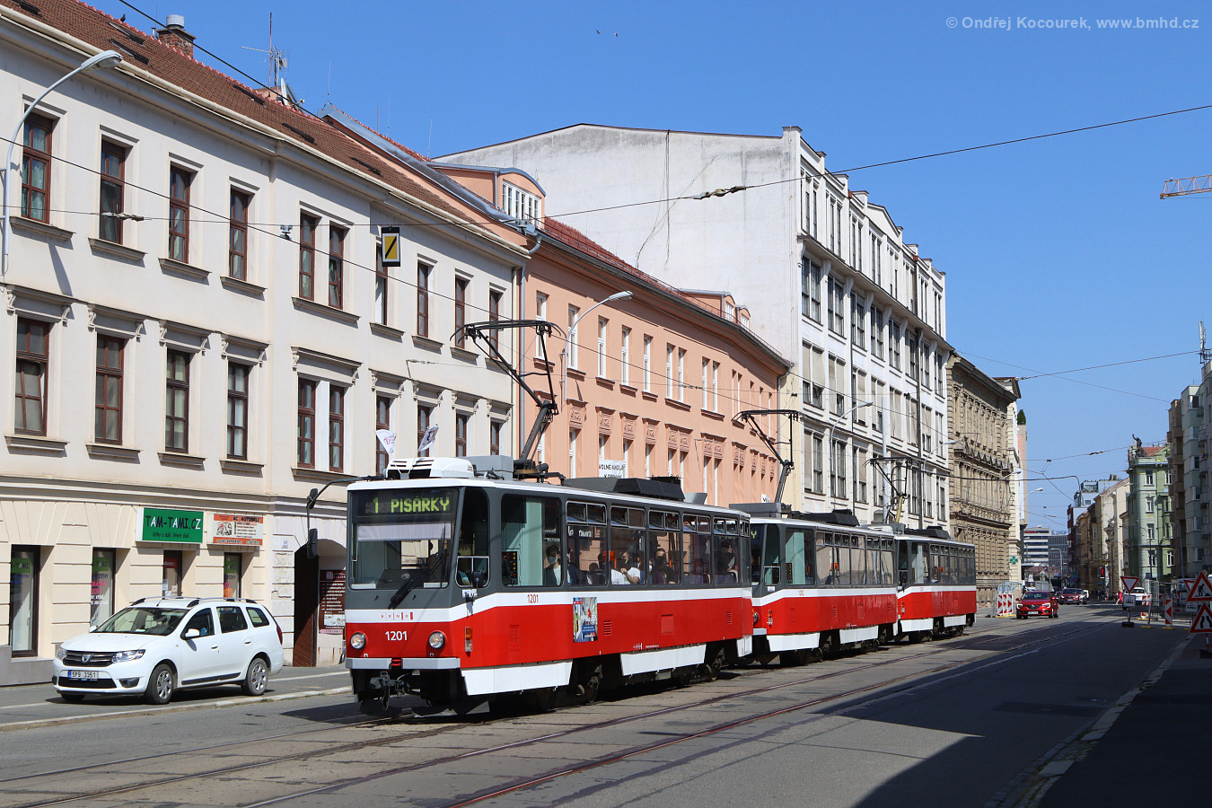 Fotografie ČKD DS T6A5 1201 DPMB | ČKD DS T6A5 1202 DPMB | ČKD DS T6A5 1203 DPMB | Brno-Staré Brno, Hybešova | Fotogalerie BMHD