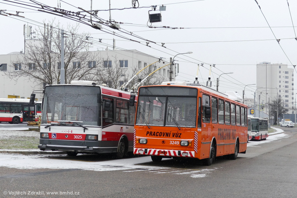 Fotografie Škoda 21 Tr 3025/II DPMB | Škoda 14 TrR 3249 DPMB | Brno-Slatina, vozovna Slatina | Fotogalerie BMHD