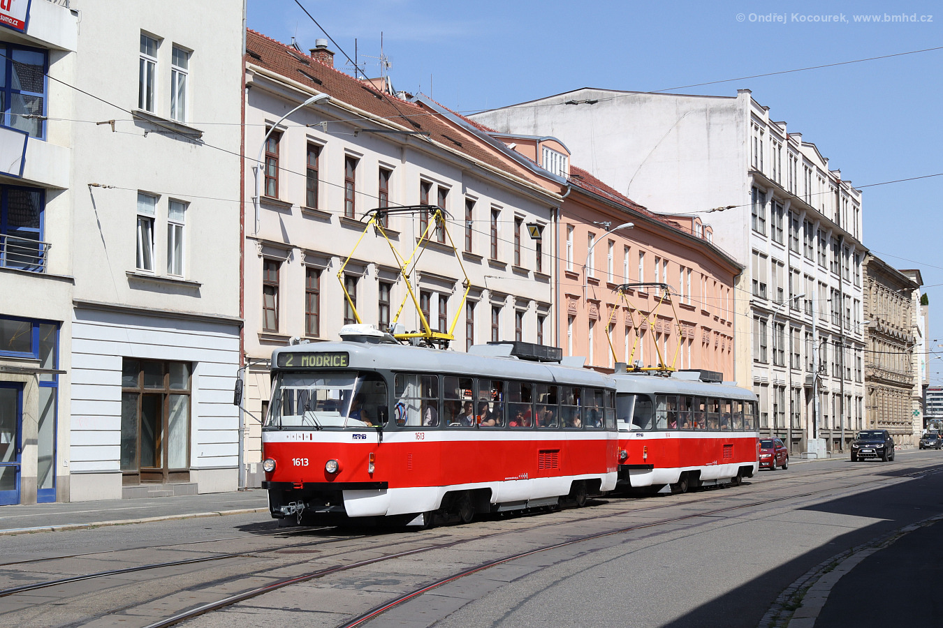 Fotografie ČKD Tatra T3G 1613 DPMB | ČKD Tatra T3G 1614 DPMB | Brno-Staré Brno, Hybešova | Fotogalerie BMHD