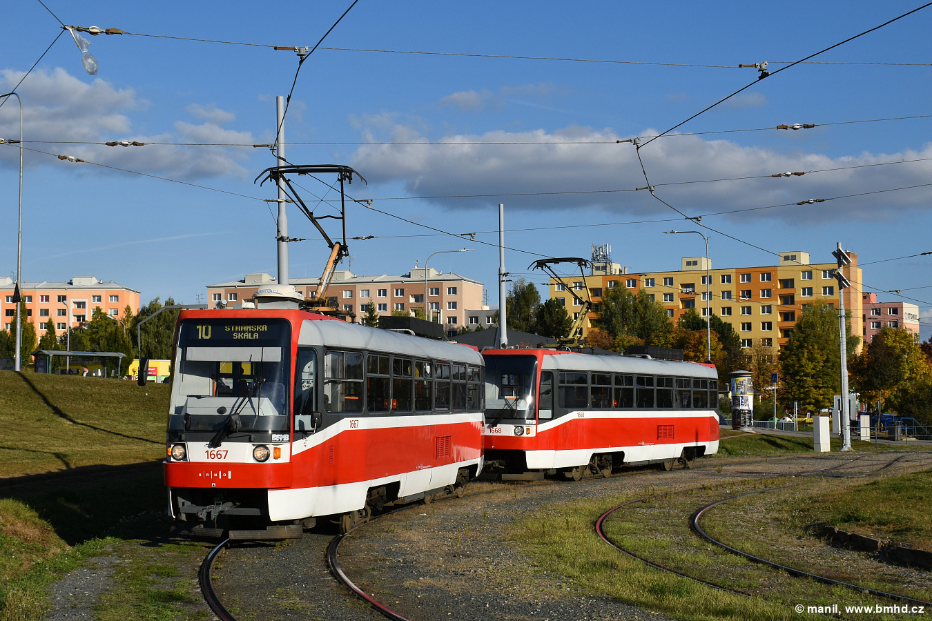 Fotografie ČKD DS T3R 1667 DPMB | ČKD DS T3R 1668 DPMB | Brno-Bystrc, Vejrostova | Fotogalerie BMHD