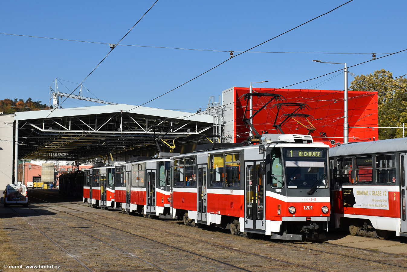 Fotografie ČKD DS T6A5 1201 DPMB | ČKD DS T6A5 1202 DPMB | ČKD DS T6A5 1203 DPMB | Brno-Pisárky, vozovna Pisárky | Fotogalerie BMHD