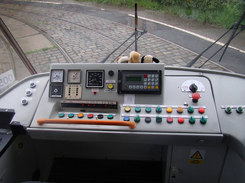 palubní deska vozů K2T. Typická je pro ně diodková signalizace vedle A/V metrů a rychloměru.