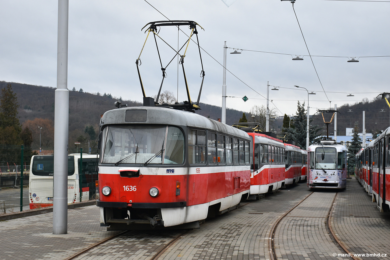 Fotografie ČKD Tatra T3G 1636 DPMB | Brno-Pisárky, vozovna Pisárky | Fotogalerie BMHD