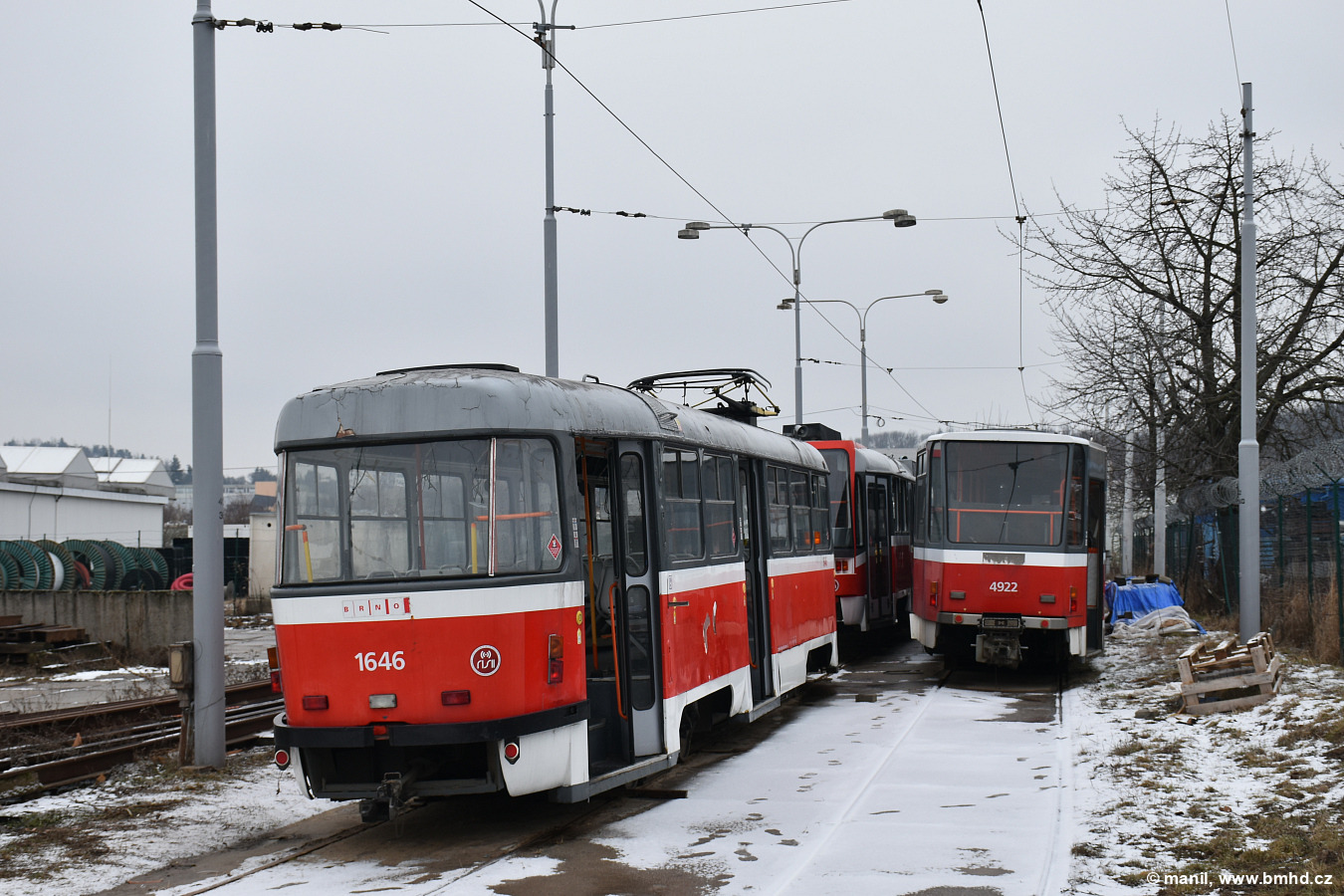 Fotografie ČKD Tatra T3G 1646 DPMB | ČKD Tatra T6A5 4922 DPMB | Brno-Medlánky, vozovna Medlánky | Fotogalerie BMHD