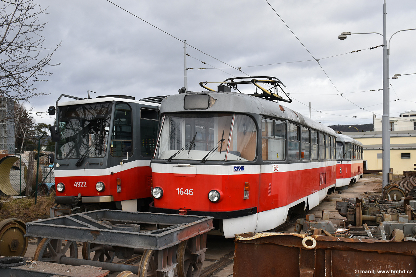 Fotografie ČKD Tatra T6A5 4922 DPMB | ČKD Tatra T3G 1646 DPMB | Brno-Medlánky, vozovna Medlánky | Fotogalerie BMHD