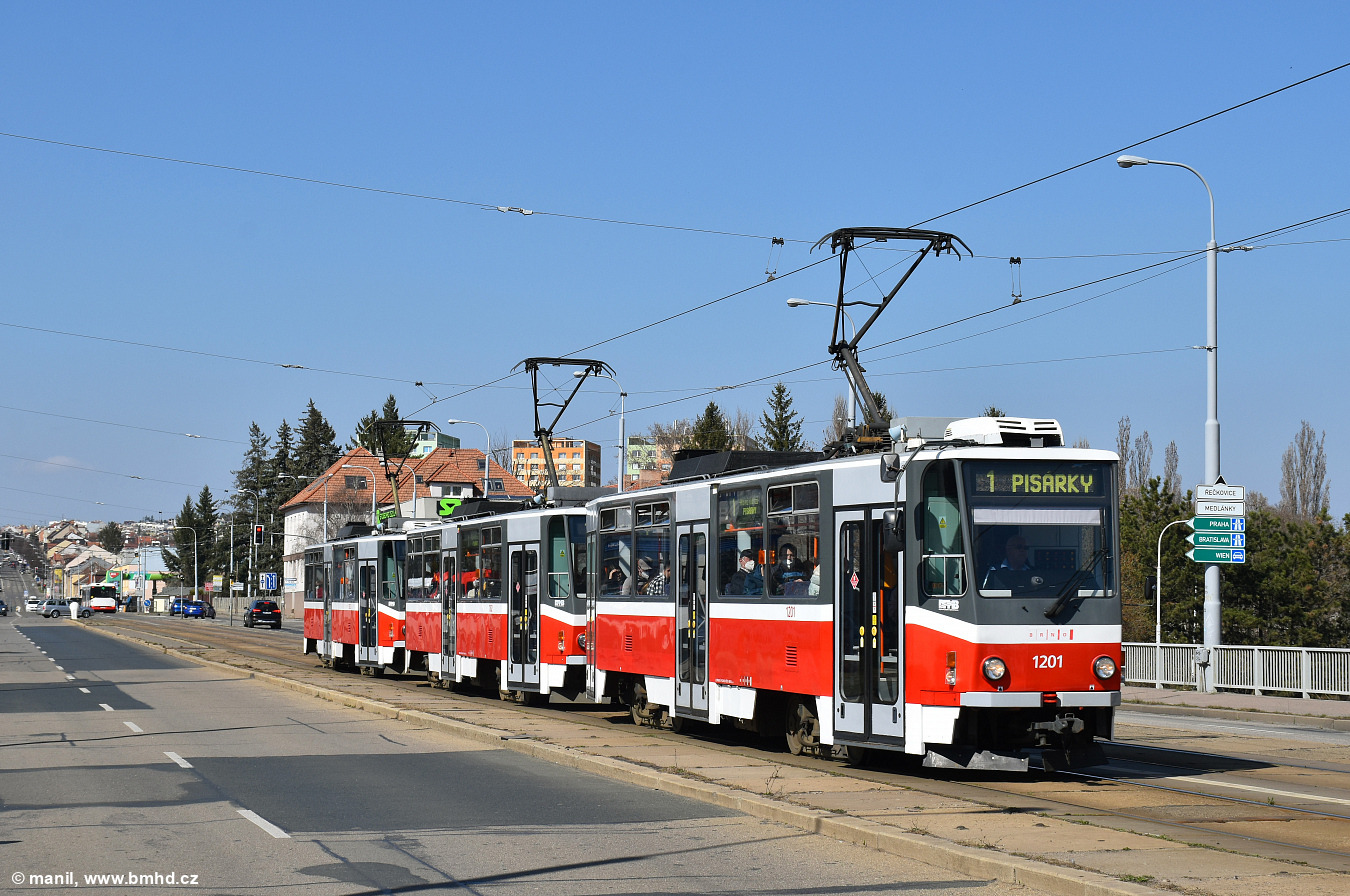 Fotografie ČKD DS T6A5 1201 DPMB | ČKD DS T6A5 1202 DPMB | ČKD DS T6A5 1203 DPMB | Brno-Královo Pole, Palackého třída | Fotogalerie BMHD
