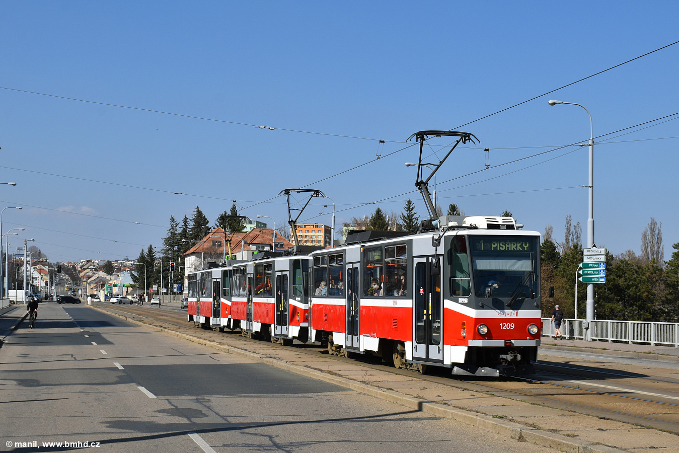 Fotografie ČKD DS T6A5 1209 DPMB | ČKD DS T6A5 1210 DPMB | ČKD DS T6A5 1216 DPMB | Brno-Královo Pole, Palackého třída | Fotogalerie BMHD
