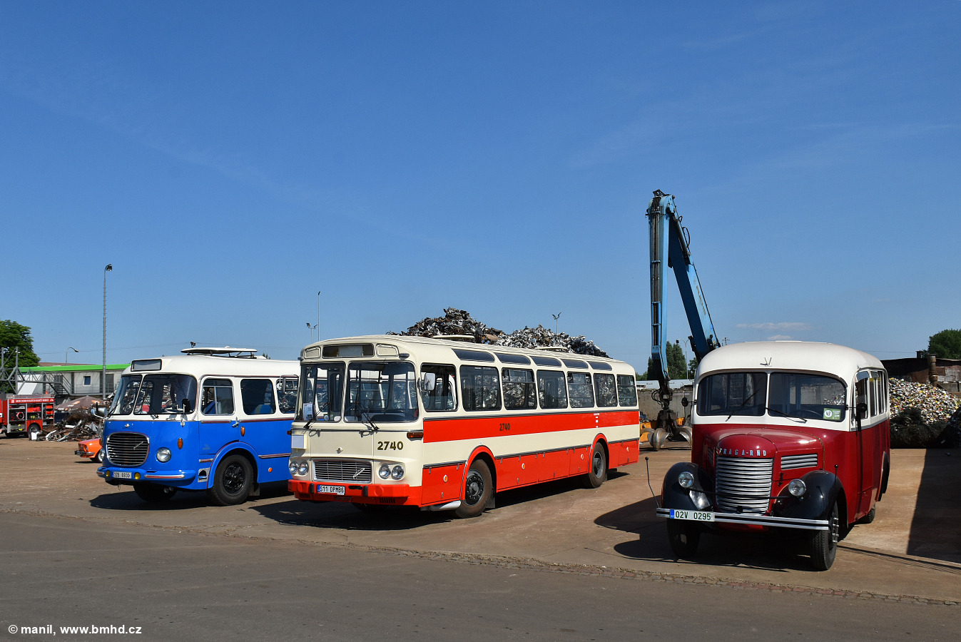 Historické autobusy DSZO, DPMB a ČSAD Kyjov na srazu veteránů v Kovozoo ve Starém Městě u Uherského Hradiště