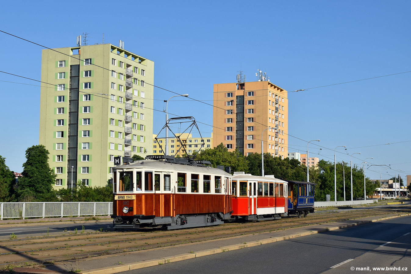 Fotografie KPS Brno mv6.3 107/III DPMB | Ringhoffer vv2.ringh 215 DPMB | Hernalser Waggon Fabrik vv0 6 DPMB | Brno-Královo Pole, Palackého třída | Fotogalerie BMHD