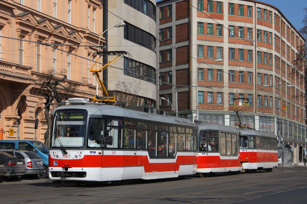 Fotografie Pragoimex VarioLFR.E 1567/III DPMB | Pragoimex VV60LF 1302/II DPMB | Pragoimex T3R.EV 1560/II DPMB | Brno-střed, Benešova | Fotogalerie BMHD
