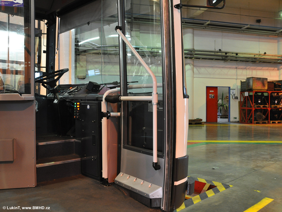 Renovace retro trolejbusu Škoda 22Tr - přední dveře po instalaci rozrážecího madla dle původního provedení