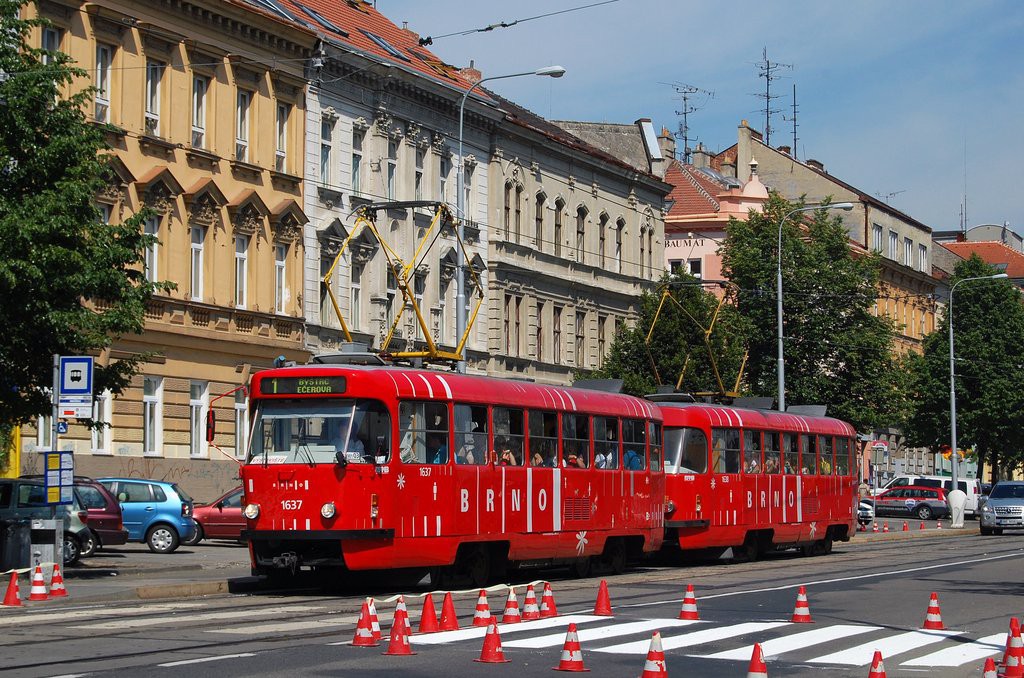 Fotografie ČKD Tatra T3G 1637 DPMB | ČKD Tatra T3G 1638 DPMB | Brno-Ponava, Štefánikova | Fotogalerie BMHD