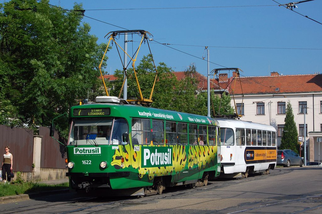 Fotografie ČKD Tatra T3P 1622 DPMB | ČKD Tatra T3P 1623 DPMB | Brno-Masarykova čtvrť, Náměstí Míru | Fotogalerie BMHD