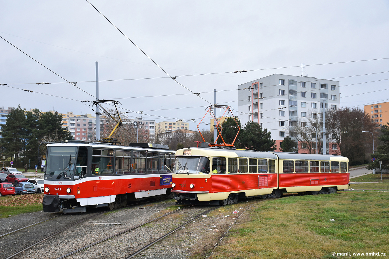 Fotografie ČKD Tatra K2 7000/IV Dopravní podnik hl. m. Prahy | ČKD Tatra T6A5 1243 DPMB | Brno-Bystrc | Fotogalerie BMHD