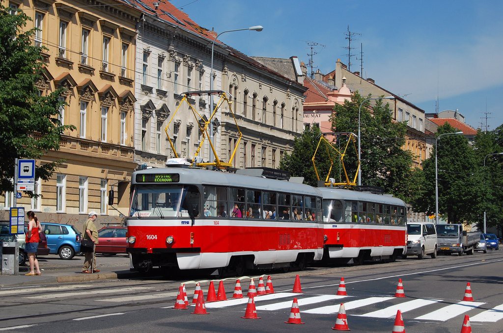 Fotografie ČKD Tatra T3G 1604 DPMB | ČKD Tatra T3G 1619 DPMB | Brno-Ponava, Štefánikova | Fotogalerie BMHD