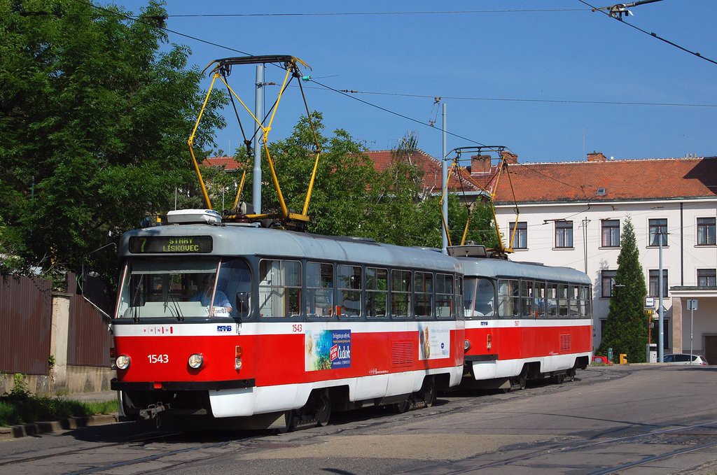 Fotografie ČKD Tatra T3P 1543 DPMB | ČKD Tatra T3P 1587 DPMB | Brno-Masarykova čtvrť, Náměstí Míru | Fotogalerie BMHD