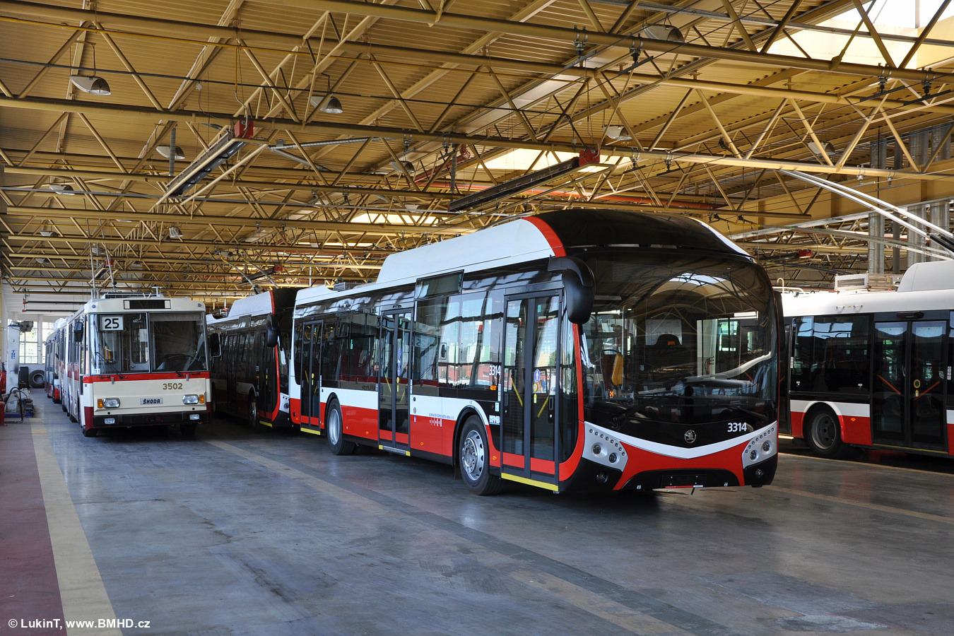 Fotografie Škoda 32 Tr 3314 DPMB | Škoda 15 Tr02 3502 DPMB | Brno-Komín, vozovna Komín | Fotogalerie BMHD