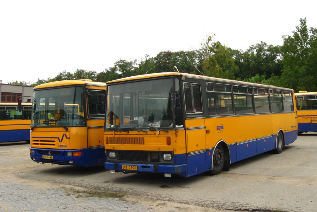 Fotografie Karosa C 734.1340 BVI 33-26 ČSAD Břeclav | Karosa C 934.1351 BVA 84-93 BORS Břeclav | Hustopeče, Bratislavská, garáže BORS | Fotogalerie BMHD