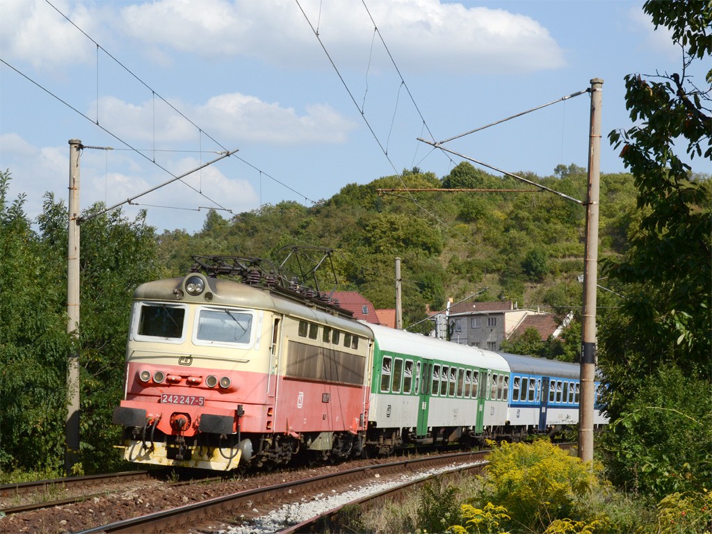 Fotografie Škoda 73 E2 242 247-5 České dráhy | VEB Waggonbau Bautzen Bdmtee275 22-44 083-2 České dráhy | VEB Waggonbau Bautzen Bdmtee281 22-44 240-8 České dráhy | Brno-Obřany, trať Brno-Židenice - Brno-Lesná | Fotogalerie BMHD