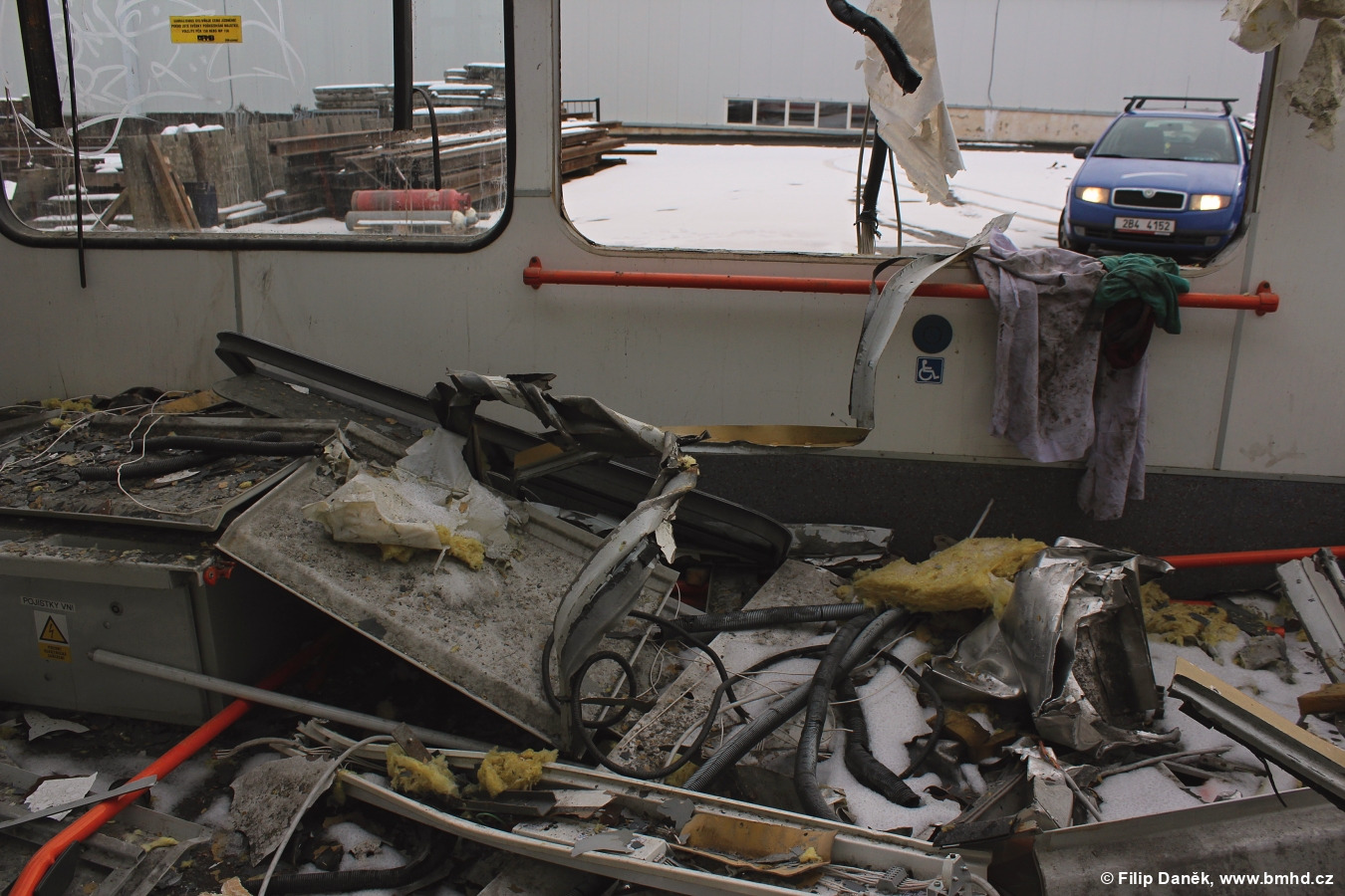 Vlečný vůz VV60LF č. 1301 v průběhu šrotace.