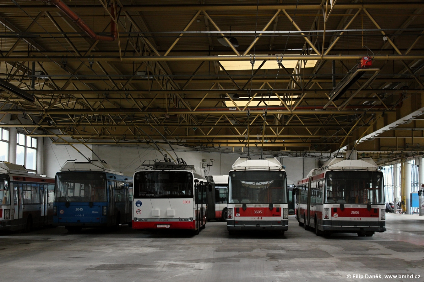 Fotografie Škoda 21 Tr 3045/II DPMB | Škoda 26 Tr 3303 DPMB | Škoda 22 Tr 3605 DPMB | Škoda 22 Tr 3606 DPMB | Brno-Komín, vozovna Komín | Fotogalerie BMHD