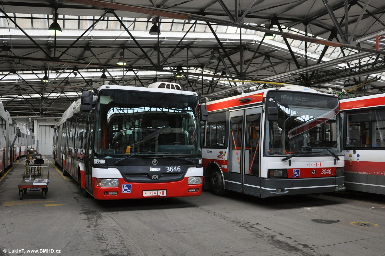 Fotografie Škoda 31 Tr 3646 DPMB | Škoda 21 Tr 3040/II DPMB | Brno-Husovice, vozovna Husovice | Fotogalerie BMHD
