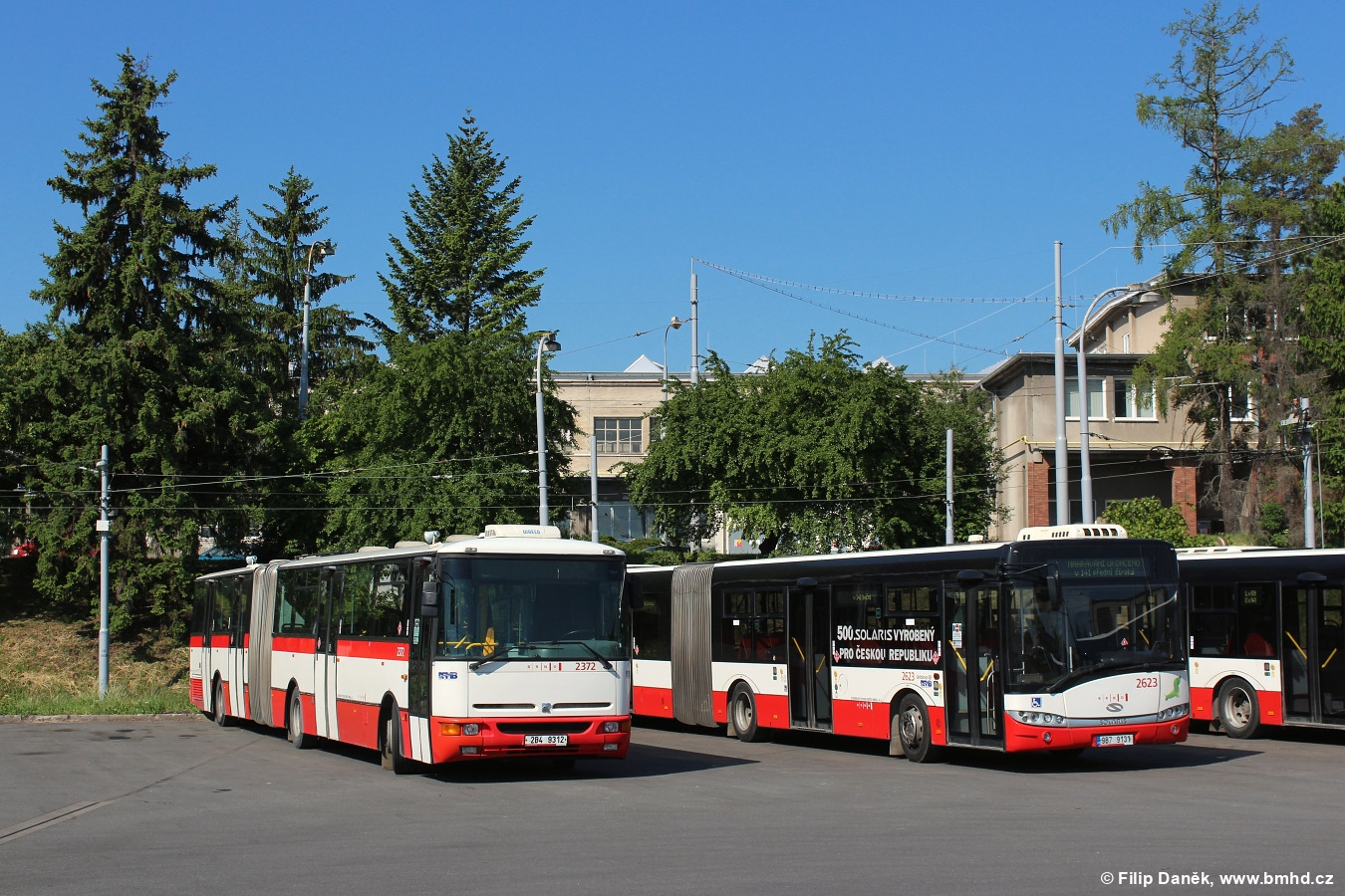 Fotografie Karosa B 961E.1970 2372 (2B4 9312) DPMB | Solaris Urbino 18 III 2623/II (9B7 9131) DPMB | Brno-Medlánky, vozovna Medlánky | Fotogalerie BMHD