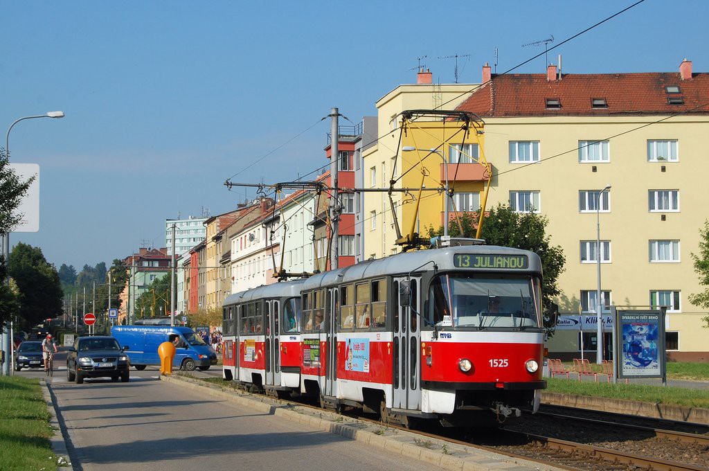 Fotografie ČKD Tatra T3 1525 DPMB | ČKD Tatra T3 1528 DPMB | Brno-Štýřice, Renneská | Fotogalerie BMHD