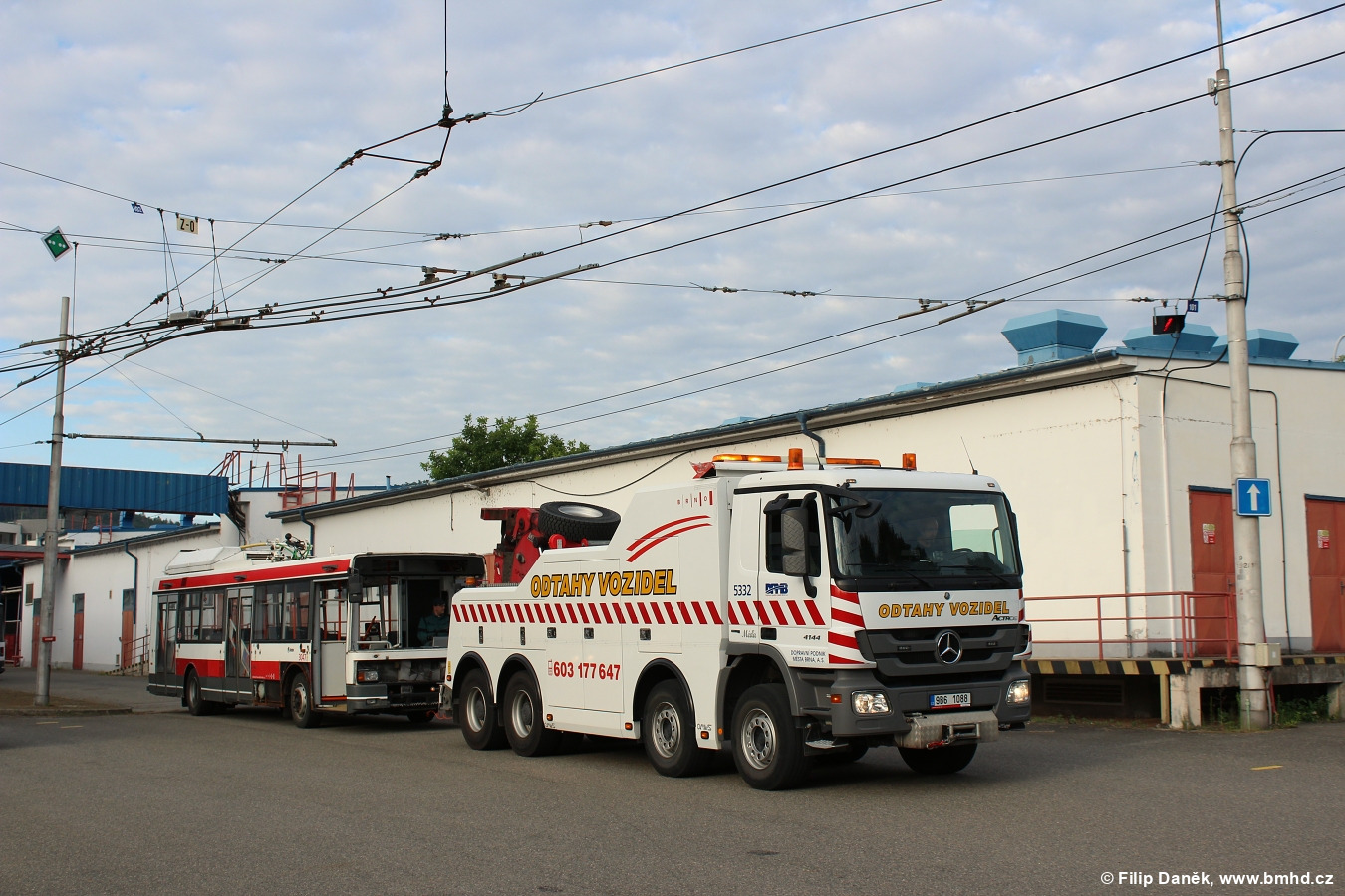Fotografie Mercedes-Benz Actros 4144 5332 (9B6 1088) DPMB | Škoda 21 Tr 3047/II DPMB | Brno-Komín, vozovna Komín | Fotogalerie BMHD