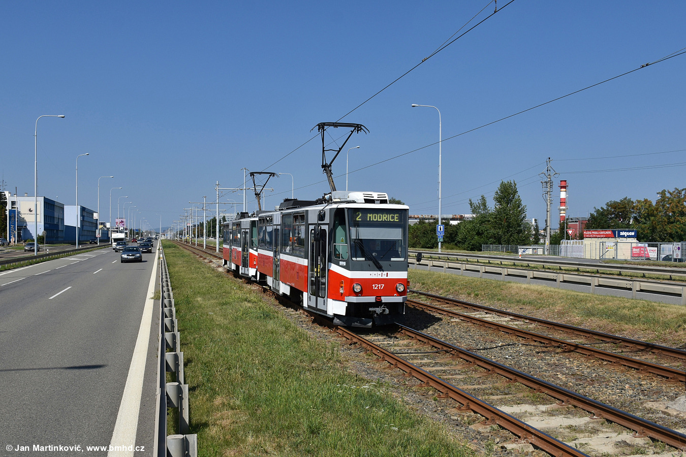 Fotografie ČKD DS T6A5 1217 DPMB | ČKD DS T6A5 1218 DPMB | Brno-Přízřenice, Vídeňská | Fotogalerie BMHD