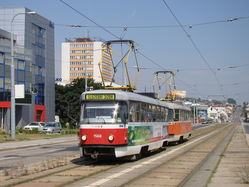 T3M 1568 byla před odstavením zapůjčena do Pisárek k měřícímu vozu 4123.