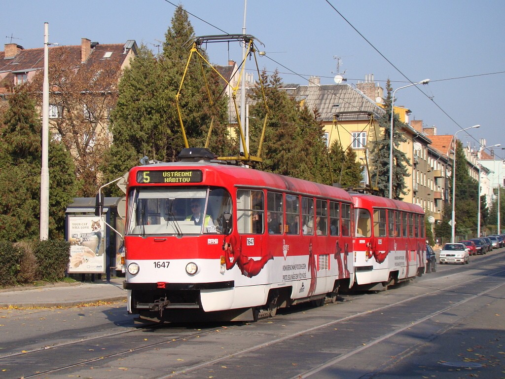 Fotografie ČKD Tatra T3G 1647 DPMB | ČKD Tatra T3G 1648 DPMB | Brno-Černá Pole, Merhautova | Fotogalerie BMHD