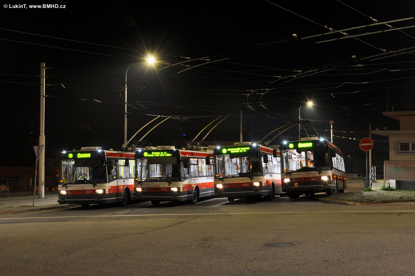 Fotografie Škoda 21 Tr 3031/II DPMB | Škoda 21 Tr 3042/II DPMB | Škoda 21 TrAC 3058/II DPMB | Škoda 21 TrIGCT 3062/II DPMB | Brno-Líšeň, Klajdovská | Fotogalerie BMHD