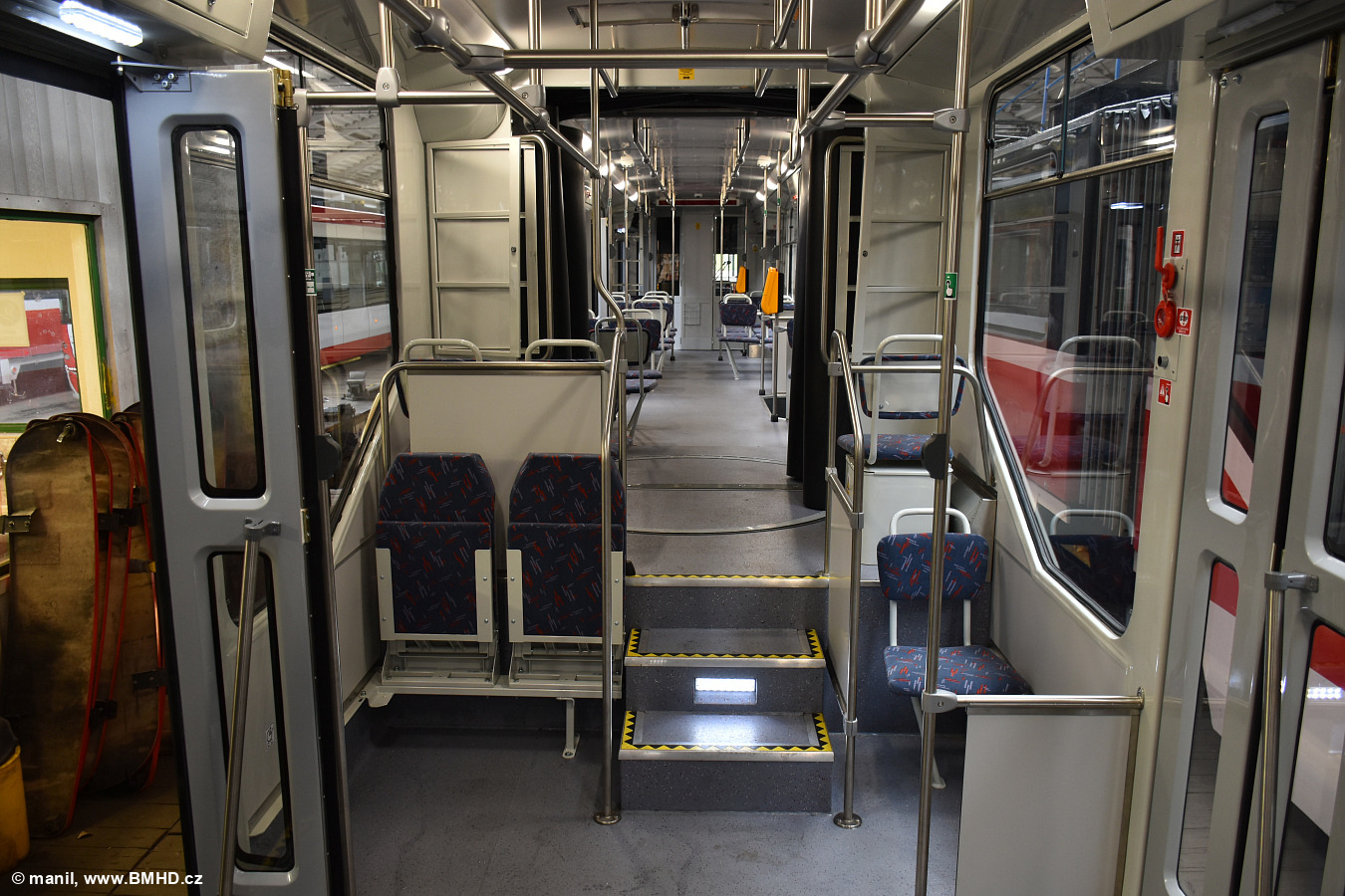 Interiér tramvaje KT8D5R.N2 1701 po GO dokončené v roce 2023