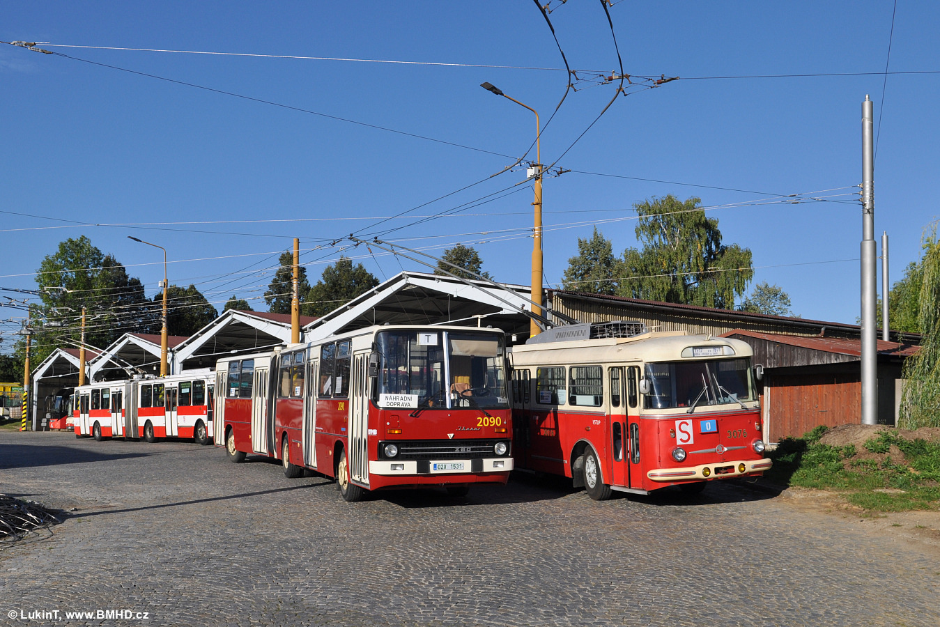 Fotografie Ikarus 280.08A 2090 (02V 1531) Technické muzeum v Brně | Škoda 9 Tr17 3076 Technické muzeum v Brně | Jihlava, vozovna Brtnická | Fotogalerie BMHD