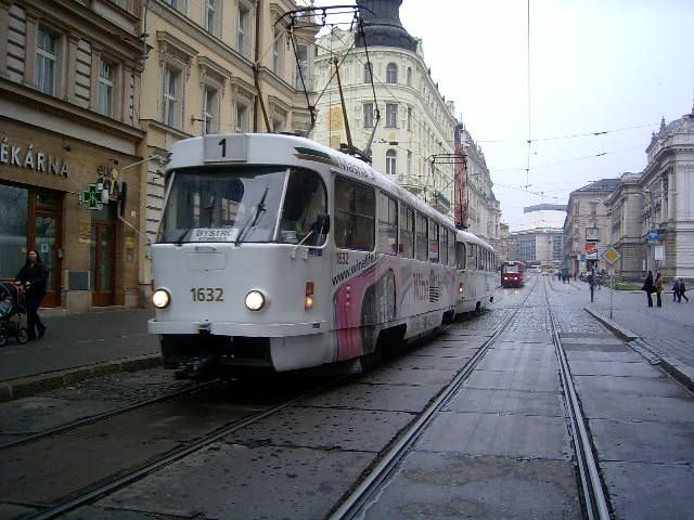 Fotografie ČKD Tatra T3SUCS 1632 DPMB | ČKD Tatra T3SUCS 1633 DPMB | Brno-střed, Divadelní | Fotogalerie BMHD