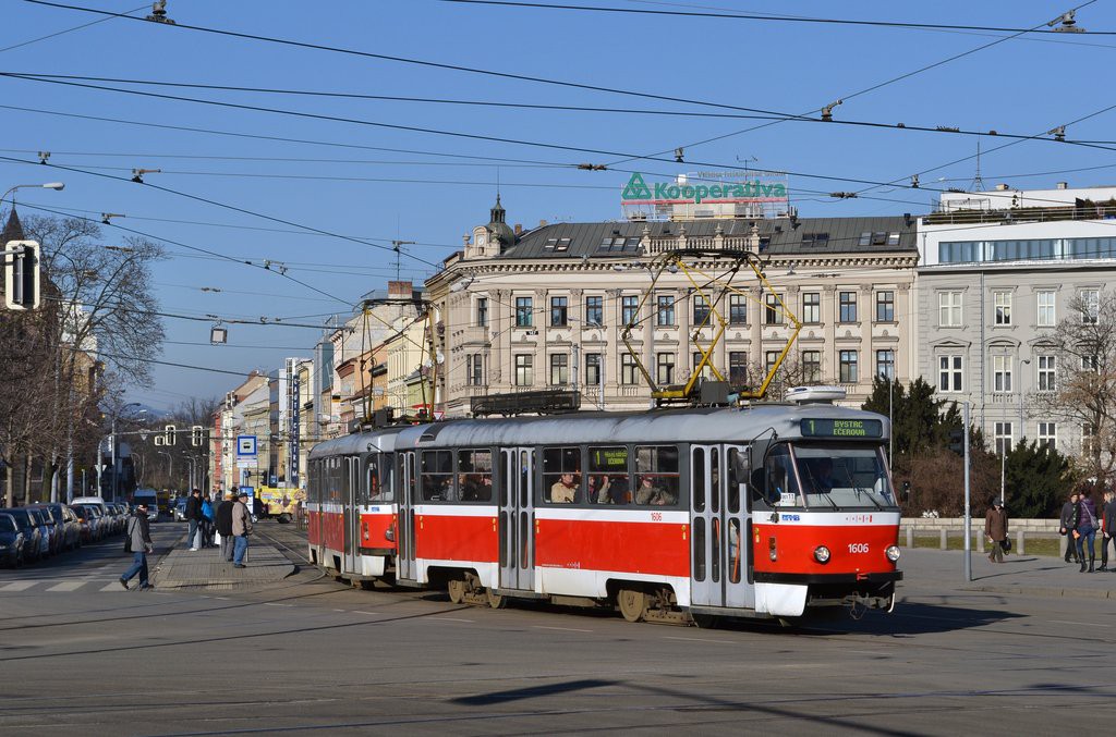 Fotografie ČKD Tatra T3G 1606 DPMB | ČKD Tatra T3G 1608 DPMB | Brno-střed, Moravské náměstí | Fotogalerie BMHD