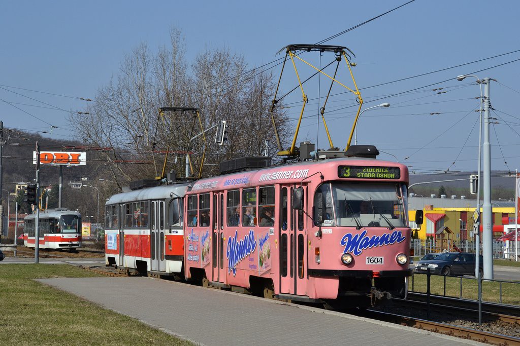 Fotografie ČKD Tatra T3G 1604 DPMB | ČKD Tatra T3G 1619 DPMB | Brno-Komín, Kníničská | Fotogalerie BMHD