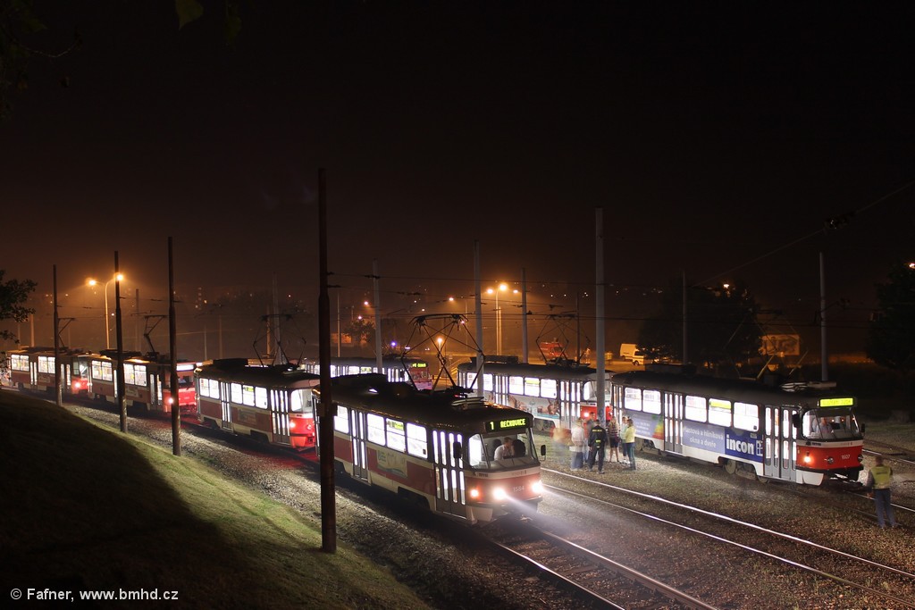 Fotografie ČKD Tatra T3M 1584 DPMB | ČKD Tatra T3M 1592 DPMB | ČKD Tatra T3G 1607 DPMB | ČKD Tatra T3G 1611 DPMB | ČKD DS T6A5 1203 DPMB | ČKD DS T6A5 1204 DPMB | Brno-Bystrc, Rakovecká | Fotogalerie BMHD