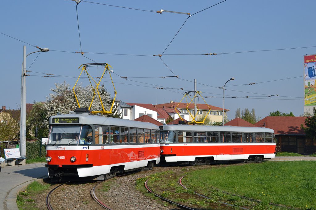 Fotografie ČKD Tatra T3G 1605 DPMB | ČKD Tatra T3G 1617 DPMB | Brno-Komárov | Fotogalerie BMHD