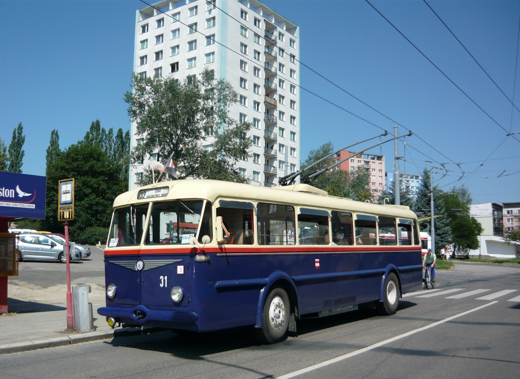 Historický trolejbus Škoda 7Tr na lince 32 v rámci víkendového provozu - léto 2012.