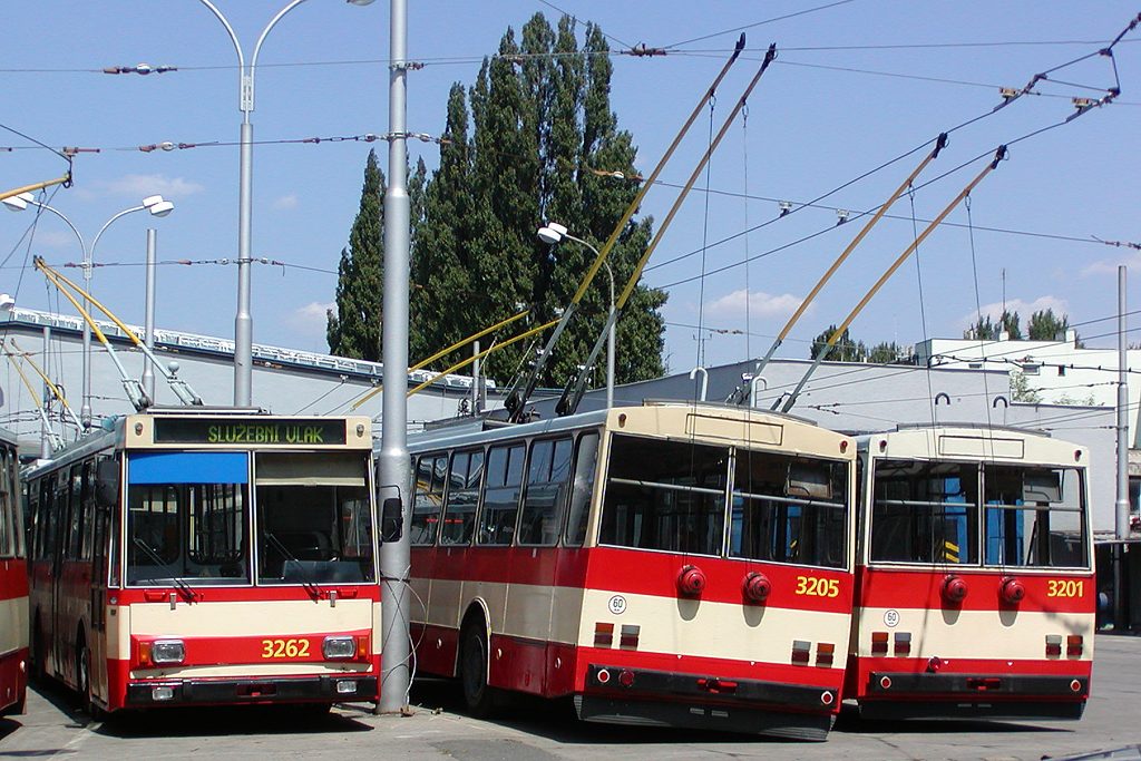 Fotografie Škoda 14 Tr14 3262 DPMB | Škoda 14 Tr08/6 3205 DPMB | Škoda 14 Tr07 3201 DPMB | Brno, Vozovna Husovice | Fotogalerie BMHD